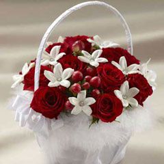 Đượm Tình gồm có hoa Hồng Song Hỷ cao cấp, hoa Thạch Thảo màu trắng và lá Si Xanh.